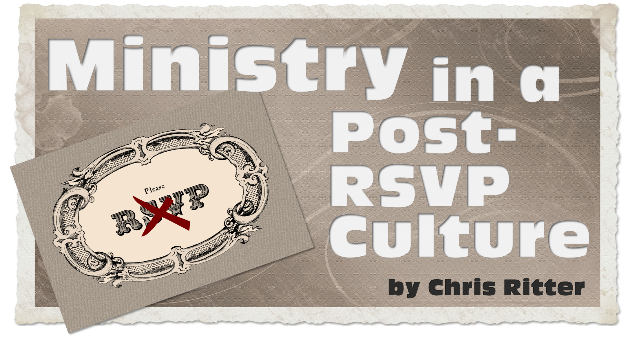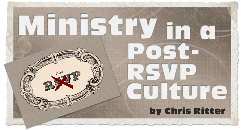 So much in church life centers around getting people together.  In many places, catered meals have replaced potlucks in order to accommodate people’s over-scheduled lives. Budgets are always tight, and waste is poor stewardship of both time and money.  There are materials to order and rooms to assign.  It sure was nice when people let us know whether to expect them.
