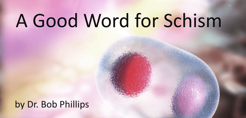 When an Improvised Explosive Device (IED) blows up, ‘traumatic amputation’ is the code terms for what happens to those near the IED.  A separation or division within the church that resembles a blow-up is schism at its worst. I have met lots of folks on all sides of issues in our denomination but never have met anyone consciously eager to destroy the village in order to save it. A healthy cell, on the other hand, divides in a process called mitosis. It creates and extends life. In church settings it is the satellite congregation formed from the home church. This in turn spawns its own satellites, thus expressing the truth of 2 Timothy 2:2, spiritual reproduction that kindles the generational pass-down of life in Christ. IED is schism. Mitosis is not schism.