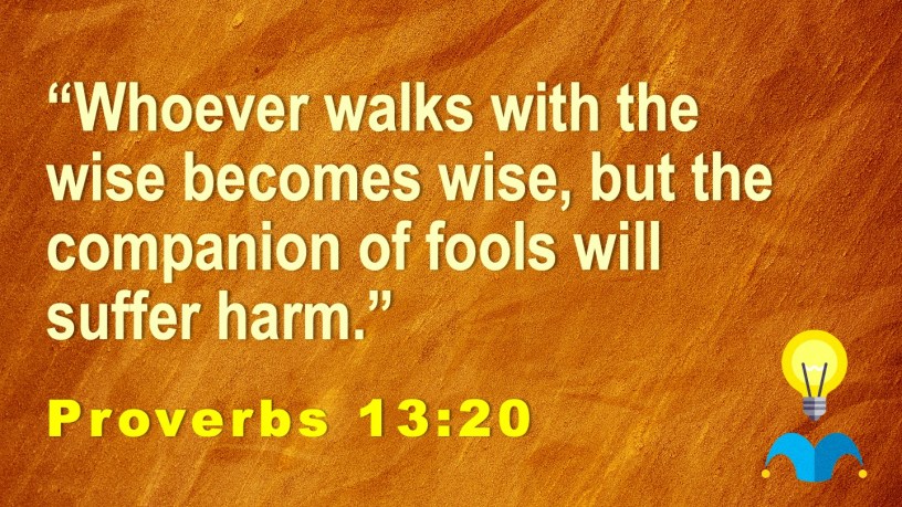 “Whoever walks with the wise becomes wise, but the companion of fools will suffer harm.”