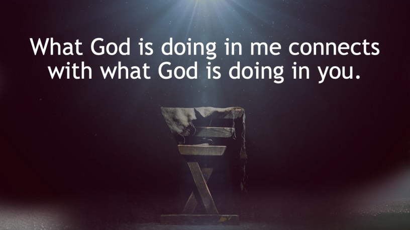 Mary and Elizabeth’s relationship reminds me that my life gets better when I find a way to make your life better. What God is doing in my heart does not compete with what God is doing in your heart. It is all connected. It is the work of the same Holy Spirit. I pray that we become this kind of church.