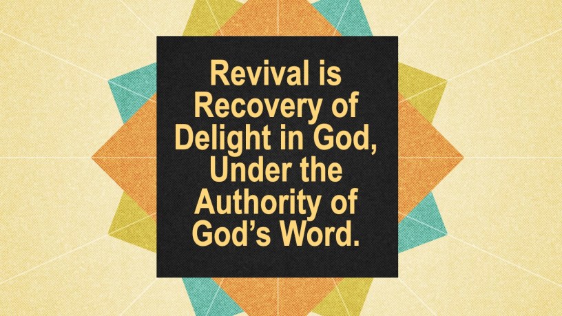 All true revival in a fresh encounter with God’s Word so that we can return to him and live in simple, joyful obedience. The joy of the Lord is our strength.