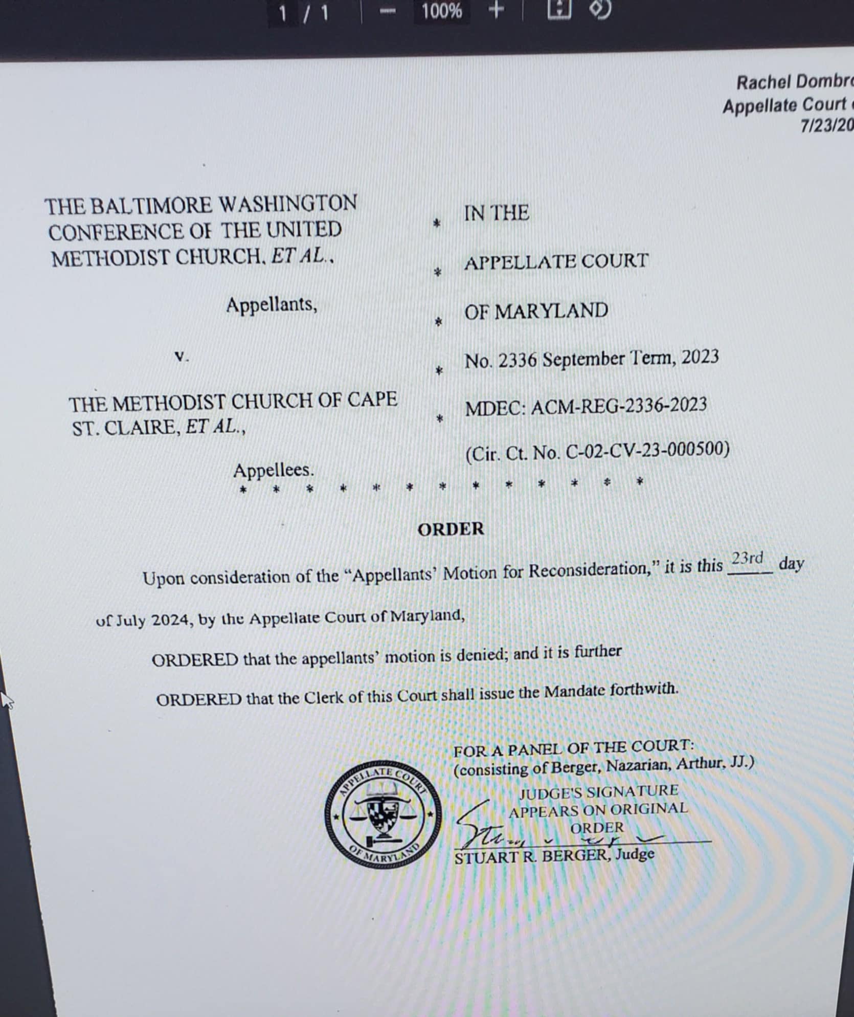 Eastern Pennsylvania Conference Motion for Summary Judgment via CourtsApp. “On December 23rd, the Eastern Pennsylvania Annual Conference filed a motion for summary judgement in the case where over 50 churches are seeking more equitable terms to leave the United Methodist denomination. If the motion is denied, the case may move to trial in the spring of 2025.” (Added 12-27-2024)